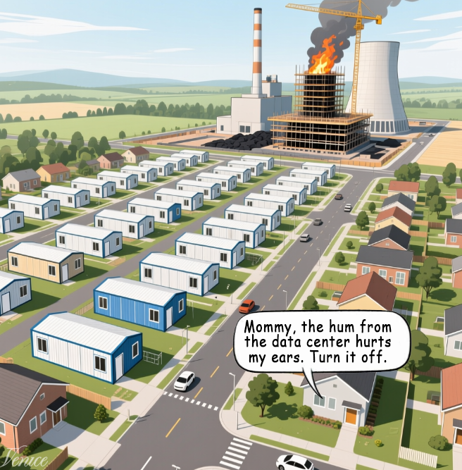 Trans-continental AI infrastructure. Will these be silent, reduce pollution, and improve the life of kids who live near the facilities? Of course, because some mommies will say, “Just concentrate and put in your ear plugs. I am not telling you again.” Thanks, Venice. Good enough after four tries. Par for the AI course.