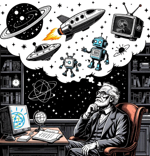 A big thinker conceptualizes inventions anticipated by science fiction writers. The expert believes that if he thinks it, that “it” will become real. Sure, but usually more than a couple of years are needed for really big projects like affordable quantum computers linked via quantum networks. Thanks, Venice.ai. Good enough.