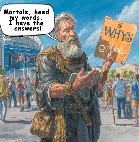 From my point of view, there are a couple of differences between the Toyota and it why era and Palantir today; for instance, Toyota was into measured, mostly disciplined process improvement. Palantir is more like the “move fast, break things” Silicon Valley outfit. Toyota was reasonably transparent about its processes. I did see the lights out factory near the Tokyo airport which was off limits to Kentucky people like. Palantir is in my mind associated with faux secrecy, legal paperwork, and those i2-related sealed documents.