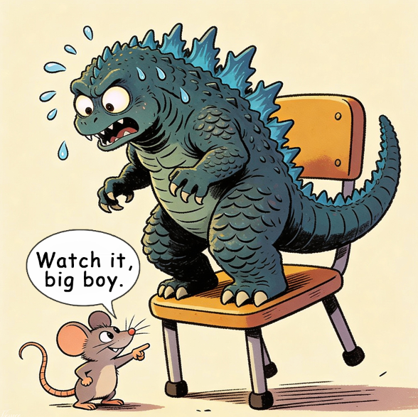 “Google Removes AI Videos of Disney Characters After Cease and Desist Letter” made me visualize an image of Godzilla which I sometimes misspell as Googzilla frightened of a mouse; specifically, a quite angry Mickey. Why?