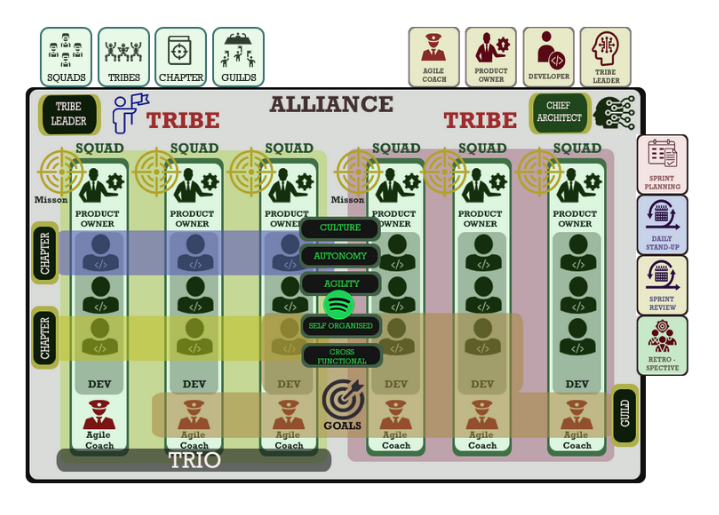 - The matrix has weird “leadership” or “employment categories” distributed across the X axes at the top of the chart. What’s a chapter? What’s an alliance? What’s self organized and autonomous in a complex technical system? My view is that this is pure baloney designed to make people feel important yet shied any one person from responsibility. I bet some reading this numbered point find my statement out of line. Tough.