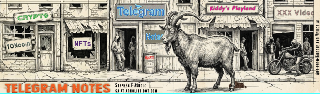 My new Telegram Notes’ service is coming along. Watch Beyond Search for a link to the stories. We will post a short summary of a story in Beyond Search which I have producing since 2008. The longer Telegram Notes’ essays will appear in the new service. We are testing a couple of options. We have a masthead. The art was produced by Google and Venice smart software. If you know nothing about Telegram, its Messenger Service, or its new financial services, the illustration won’t make much sense. If you know a bit about Telegram, you will know about the GOAT. The references to crypto and other content are references to allegations about the content on the platform.